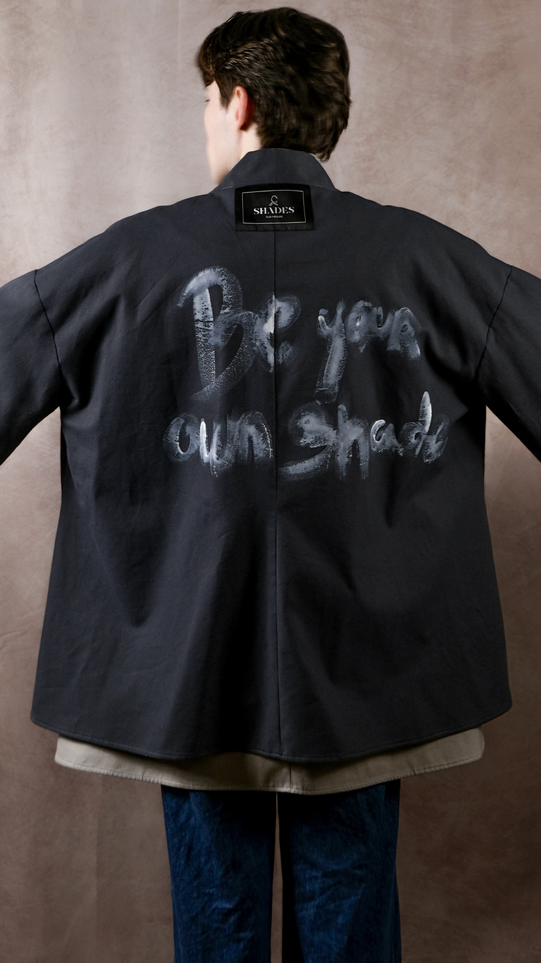 Au cœur de la pièce, notre mantra : “Be Your Own Shade”, peint à la main par le créateur. Chaque modèle est unique, écrit spécialement pour vous, comme une signature intime.